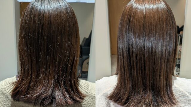 京橋店のカラーエステの施術実績 ブリーチ毛もカラーエステで艶を復活♪ dearskyobashi 2020年5月30日 2020.08.21 皆さんこんにちは! 今回初来店のお客様♪ブリーチカラーをして色落ち、髪のパサつきや絡まり、ダメージがとにかく嫌だ!ということでの初来店。 ブリーチによる毛先ダメージと、乾燥がかなり進行していたので今回はカラーエステで色素とたっぷりの保湿、栄養補給をさせて頂きました♪ 一度でも指が通るように! ブリーチ毛には色素を重ねていき、栄養素も繰り返し重ねていくことでどんどん色持ちも良くなり手触りも良くなってくれます♪ これからもどんどんきれいにしていけるよう頑張っていきましょう( ´ ▽ ` )