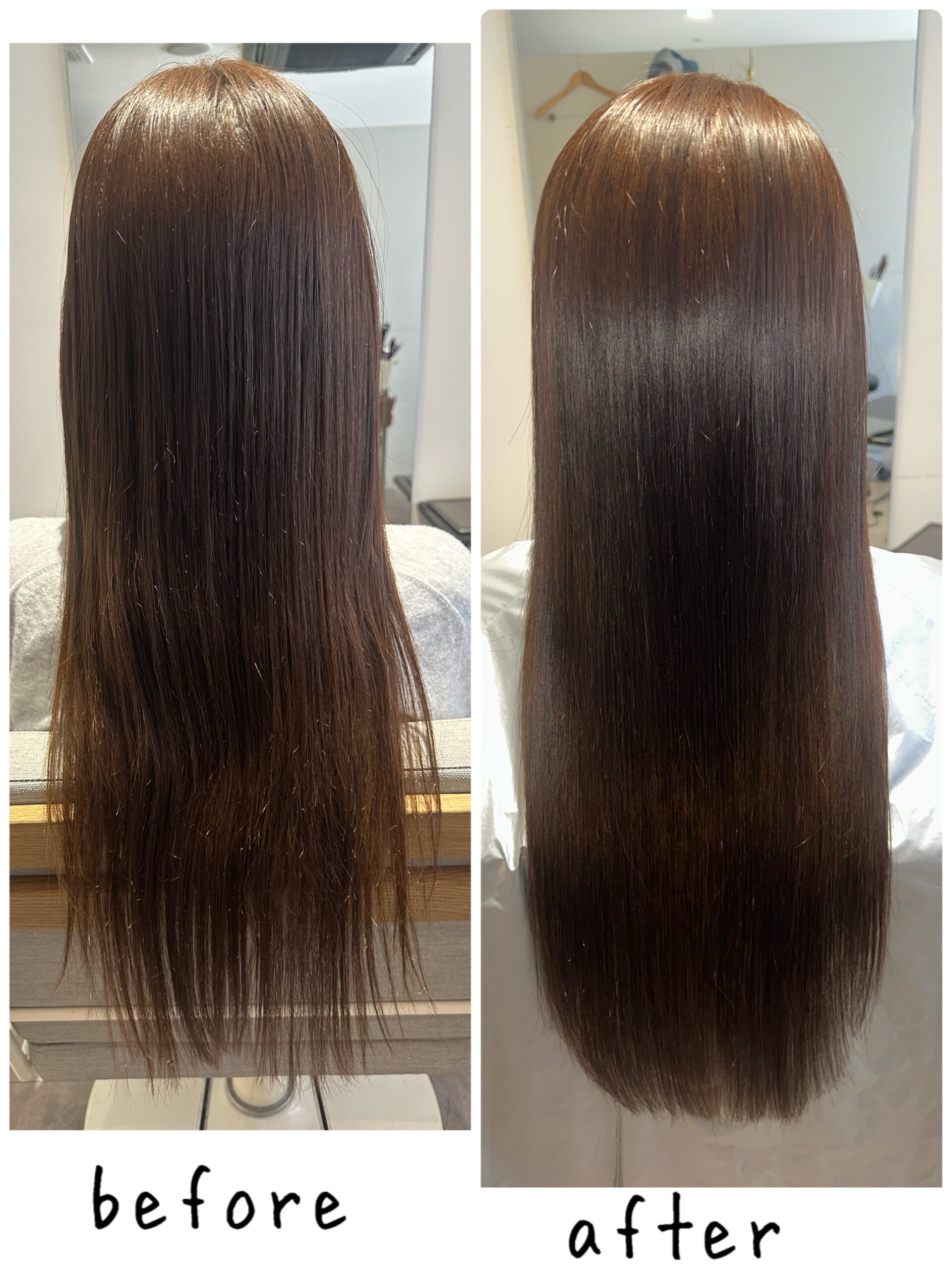 京橋店のカラーエステの施術実績 カラーエステでまとまるロングヘアに dearskyobashi 2025年4月29日 カラーエステをさせていただきました。 とてもロングヘアなので、毛先が乾燥しやすいのと少し引っかかってしまうところがお悩みでした。 白髪も少しあるので、お客様のお悩みをしっかりとカウンセリングさせていただき1番いい施術ができるよう栄養素や薬剤を調合しました。 仕上がりは毛先までサラサラのロングヘアに。 まだ伸ばされたいので、これからもしっかりとお手入れのお手伝いをさせていたいだきたいと思います。