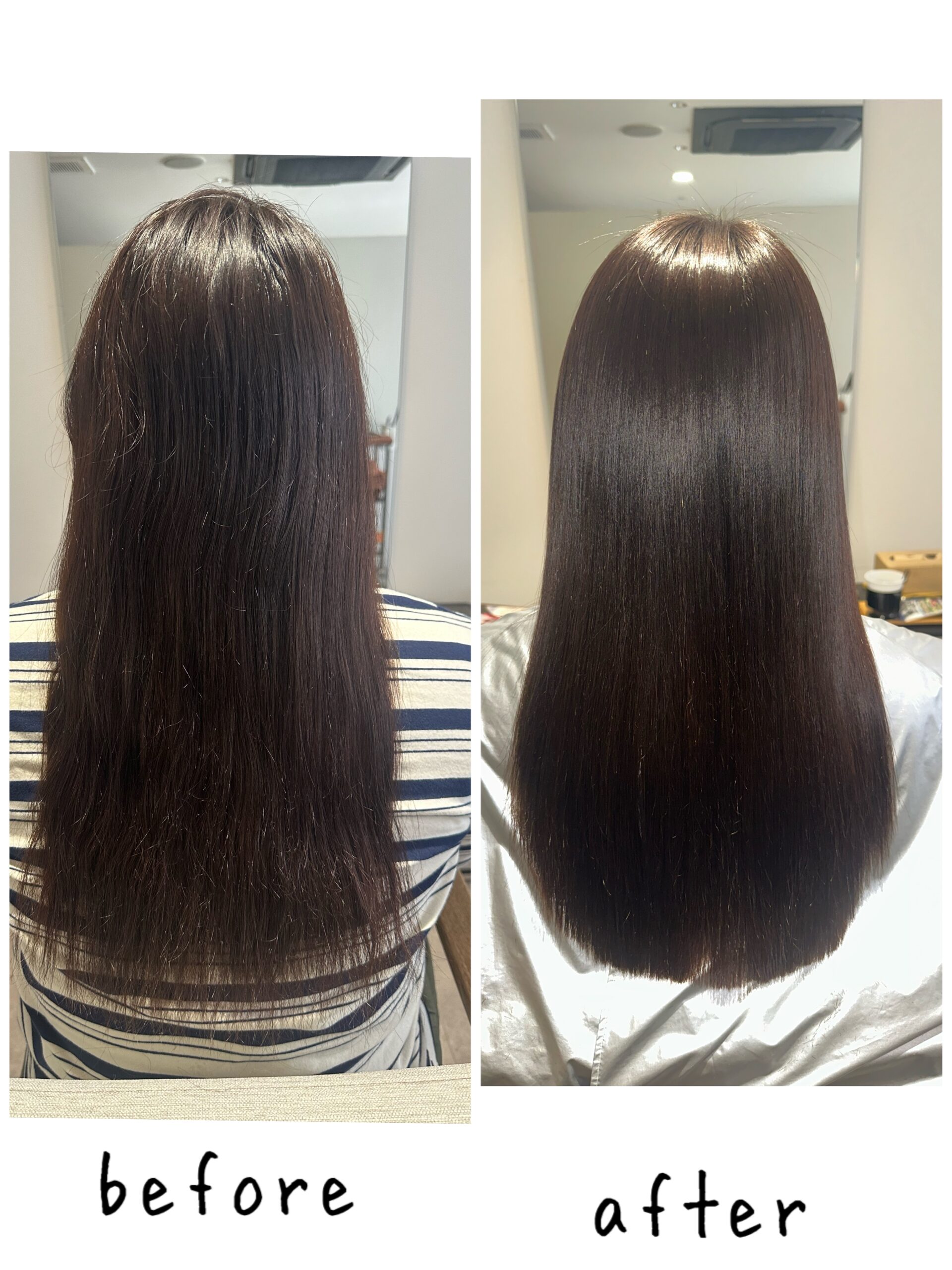 仕上がりはとてもサラサラで手触りの良いストレートヘアになりました。