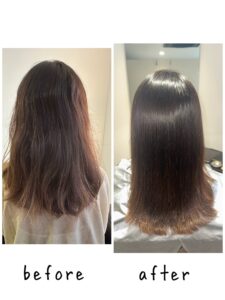 仕上がりはとても手触りの良い髪になり、とても喜んでいただけました。
