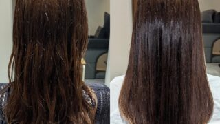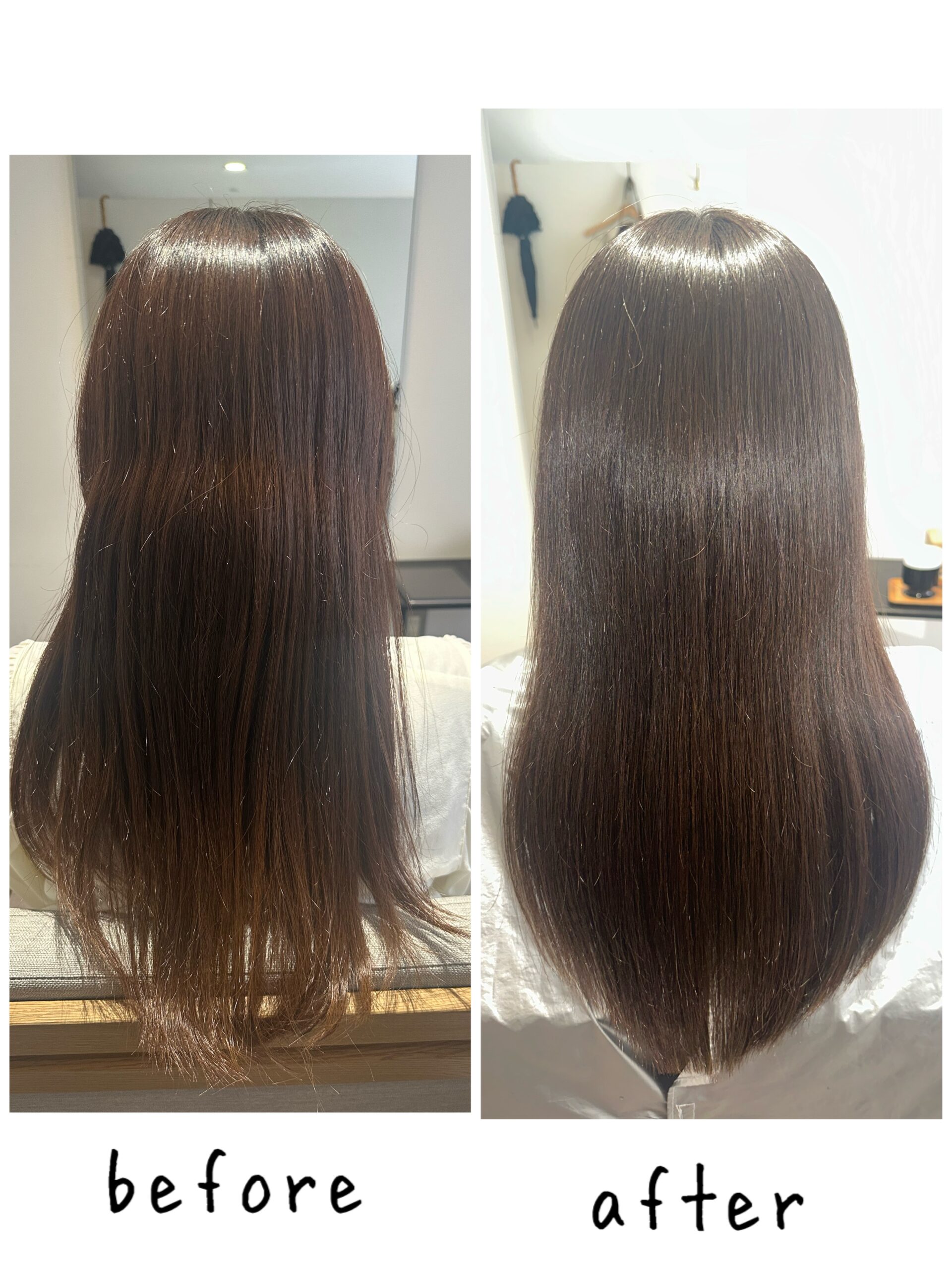 京橋店のカラーエステの施術実績 カラーエステでサラサラに dearskyobashi 2025年6月29日 カラーエステをさせていただいたお客様です。 毛先が乾燥しやすく、広がってしまうことがお悩みでした。でも、長さはあまり切りたくない!とのことでしたので、毛先をしっかり保湿しその上からカラーをさせていただきました。もちろん、カラー剤の中にも栄養素がたっぷり混ぜ込んであります。 仕上がりは、サラサラのまとまる髪になりました。手触りも毛先まで良く乾かすだけで写真のafterのようになりとても喜んでいただけました。