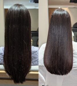 京橋店のトリートメントエステの施術実績 夏のダメージヘアにトリートメントエステでご褒美を♪ dearskyobashi 2025年8月31日 夏は強い紫外線や汗、冷房の乾燥で、髪が大きなダメージを受けがち。 そんな時には「トリートメントエステ」でしっかり補修してあげましょう。 高濃度のタンパク質と潤い成分を髪の奥深くまで届け、夏のダメージ補修を徹底的に。パサついた髪がしっとり落ち着き、手触りはなめらか、ツヤも戻ります。 定期的なケアで、夏の疲れをため込まないことが美髪への近道。 髪もお肌と同じように「季節ごとのお手入れ」が大切です◎