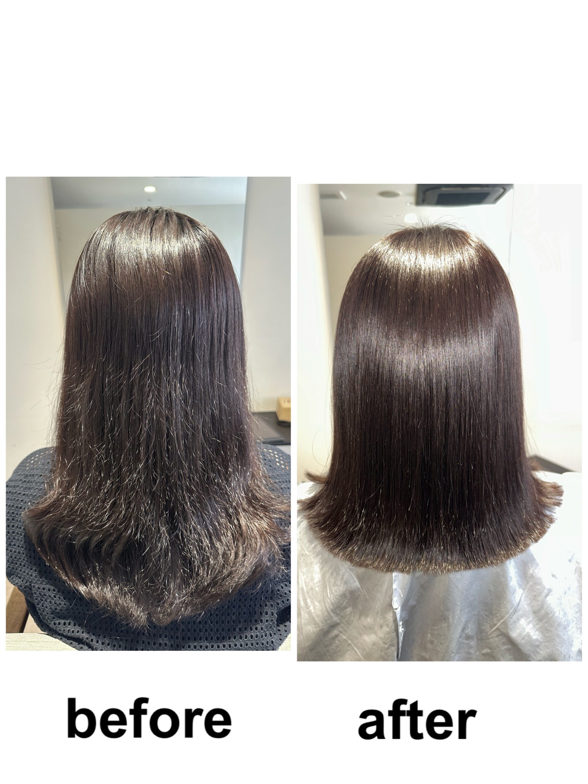 京橋店のカラーエステの施術実績 カラーエステで艶髪に! dearskyobashi 2025年9月29日 定期的にご来店いただいているお客様です。今回はカラーエステをさせていただきました。 髪質は細くてやわらかいです。 毛先がからまりやすくなってきたので、バッサリ切りました。 カラーリングは艶髪になるよう、少し赤み系のお色をいれベースはブラウンに。 仕上がりはとても艶のある髪に! 手触りもかなりよくなり、とても喜んでいただけましま。