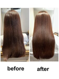 京橋店のストレートエステの施術実績 ストレートエステで艶のある髪に dearskyobashi 2025年9月30日 今回のお客様は、ストレートエステをさせていただきました。表面のクセはそこまで強くないのですが、内側のクセがかなり強くてうねりが気になります。 しっかりと毛髪診断をさせていただき、髪質にあった栄養素とお薬を調合しストレートエステをさせていただきました。 仕上がりはは艶のあるさらさらのストレートヘアになりとても喜んでいただけました。