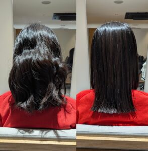 京橋店のストレートエステの施術実績 ストレートエステで冬に向けて扱いやすいまとまり髪へ♪ dearskyobashi 2025年10月31日 湿気の多い夏に加え、汗や紫外線でダメージを受けた髪。 そのまま放置すると、秋冬の乾燥で広がりやすくなってしまいます。 ストレートエステは、高濃度タンパク質を入れ込みながらクセを整え、自然なまとまりと柔らかさを実現。 毛先までツヤのある、扱いやすい髪へ導きます。 乾燥する季節も朝のセットがラクになる、ストレスフリーなツヤ髪を手に入れましょう。