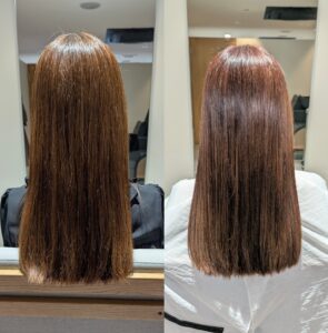 当店のカラーエステは、高濃度のタンパク質を補給しながらカラーを行う特別なケアカラー。
